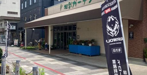 JR相模原駅前の相武ガーデンにエアウルフの旗が登場!! 相武ガーデンでもドローン