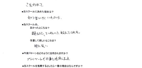 T.H様 64歳 男性町田在住 無職 当スクールお申し込みのきっかけは? ドロー